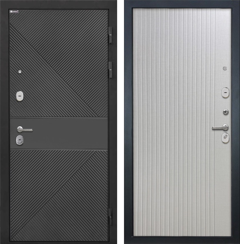 Входная дверь Сицилия ФЛ-613 Чёрный (крашеный) / ФЛ-566 Чесура светлая для установки в квартиру