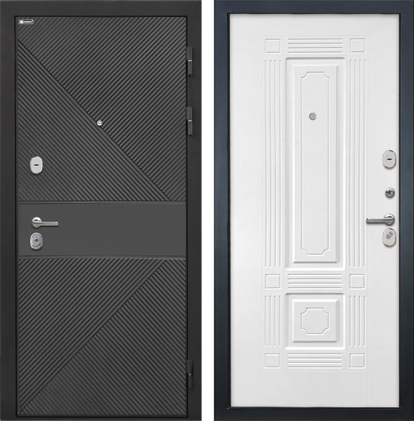 Входная дверь Сицилия ФЛ-613 Чёрный (крашеный) / ФЛ-2 Силк ясень белый для установки в квартиру