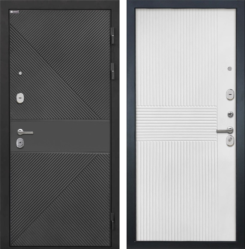 Входная дверь Сицилия ФЛ-613 Чёрный (крашеный) / ФЛ-326М Мэджик шифон белый для установки в квартиру
